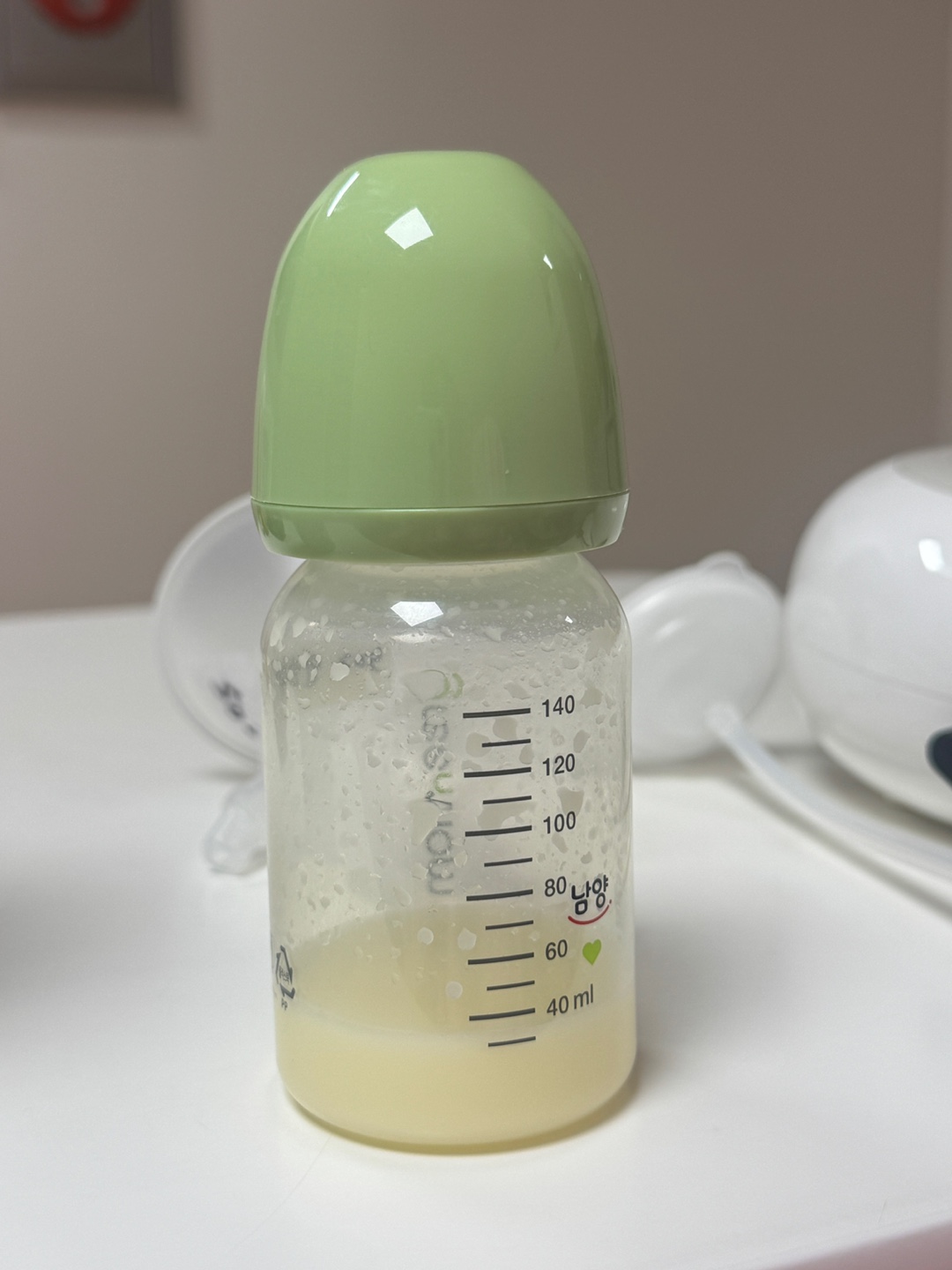 집와서는 산후도우미분 계실때 분유 먹여서 한번 유축해봤는데 3시간 텀에 80정도 나왔다.