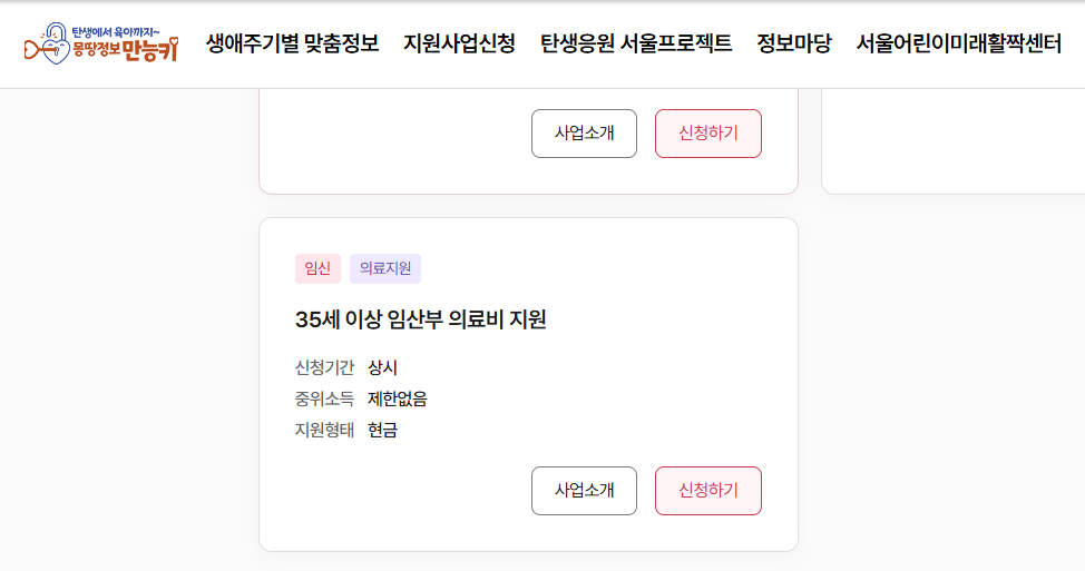 몽땅정보만능키 > 지원사업신청 > 임신> 35세 이상 임산부 의료비 지원에서 신청하면 된다!